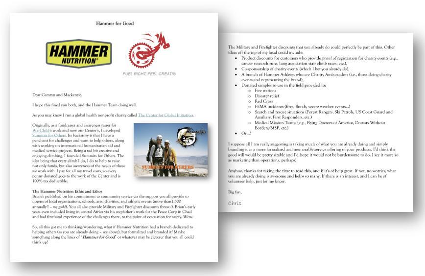 You may also know that I founded Summits for Others (http://www.alifeinfull.org/summits-forothers.html) as an awareness raising and fundraising in support of the nonprofit Center for Global Initiatives (http://www.centerforglobalinitiatives.org) as being founded based on my climbing experience of Kilimanjaro.