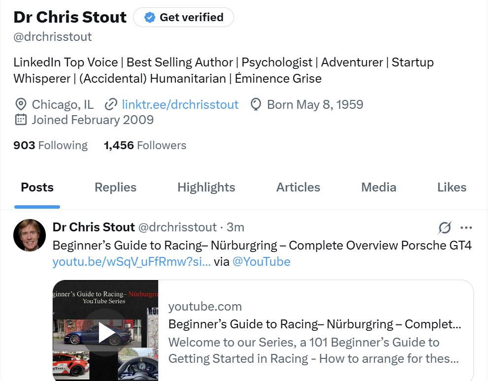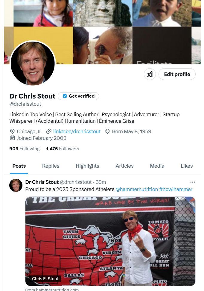 LinkedIn Top Voice (I’m nearing a Half-million Followers and have >14,000 connections) https://www.linkedin.com/in/drchrisstout