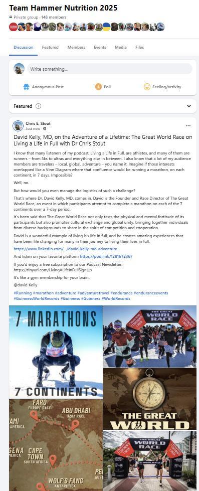 Facebook Living a Life in Full Group (>2000 members) https://www.facebook.com/groups/ALifeInFull