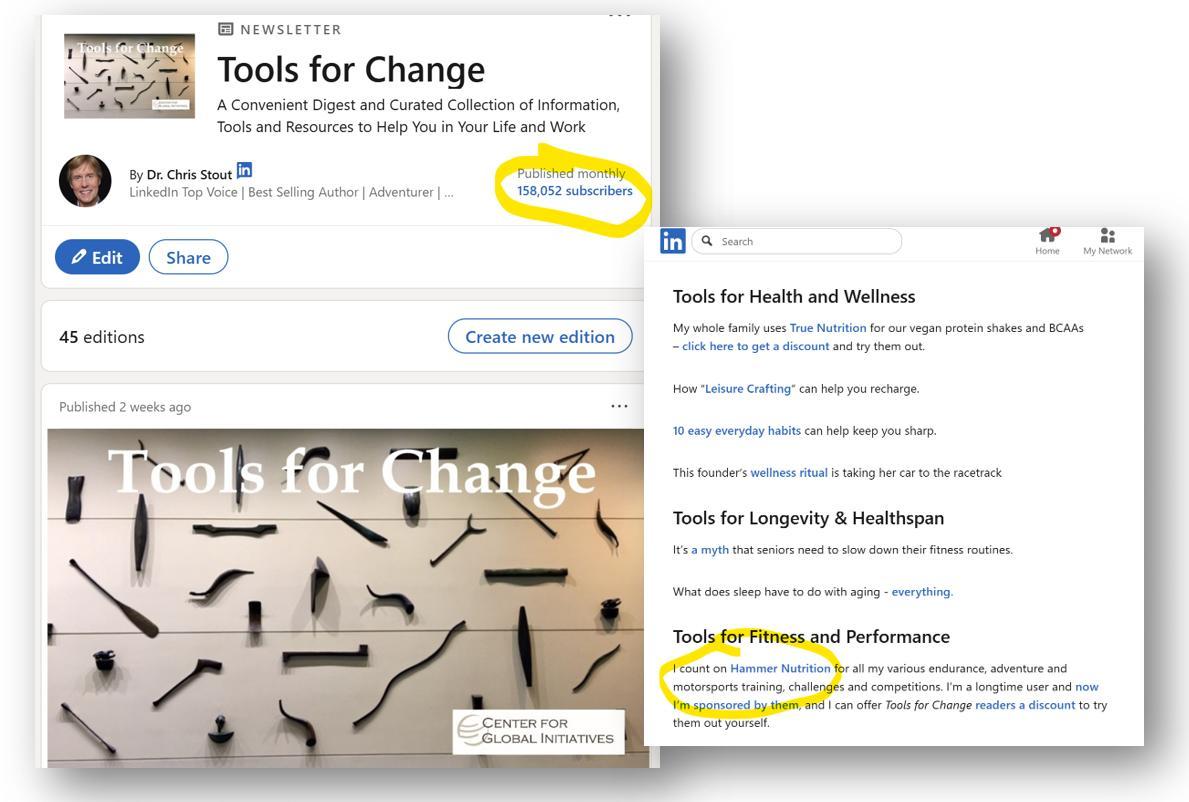 LinkedIn Top Voice Newsletter Feature: https://www.linkedin.com/newsletters/tools-for-change6694600737873309696/ (>158,000 monthly subscribers)