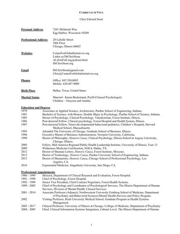 Email DrChrisStout@gmail.com Chris@CenterForGlobalinitiatives.org