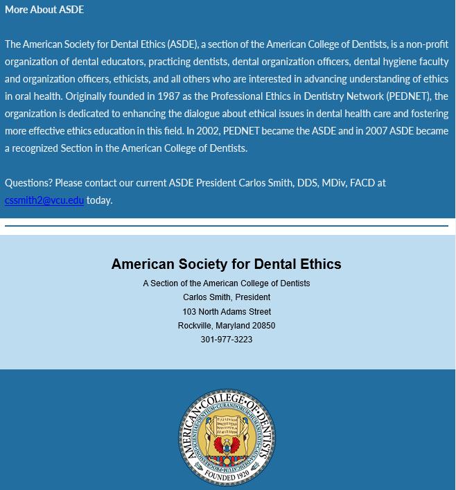 A m e r i c a n S o c i e t y o f D e n t a l E t h i c s
