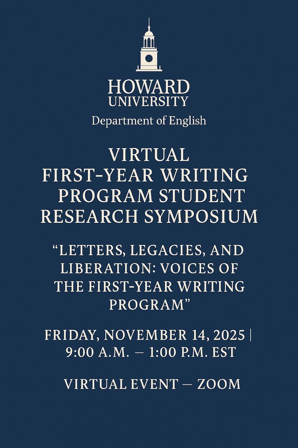 Theme: “Letters, Legacies, and Liberation: Voices of the First-Year Writing Program” � Friday, November 14, 2025 | � 9:00 a.m. – 1:00 p.m. EST � Virtual Event Zoom
