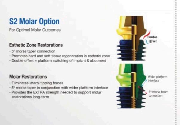 The BLX from Straumann, introduced in 2019, follows a similar concept and design to the Megagen AnyRidge Implant. For implants 3.5mmD to 5.5mmD, the diameter of the threads increases without any corresponding increase in the diameter of the necks. The result is that in soft bone, the threads expand the crestal opening and in dense bone, a large diameter drill is needed to open the socket to accommodate the wide threads. In either situation, a gap is created at the opening with a loss of contact with cortical bone. Both systems offer a single conical connection, Straumann’s being 7 degrees while Megagen’s 5 degrees. This creates an undesirable emergence profile as the width of the exposed shoulder increases with each diameter of the implants. The implants differ in that the AnyRidge implant does not have a self-tapping cutting groove whereas the BLX, which unlike the AnyRidge, is basically a straight implant for the first 12mm, has bi-directional cutting grooves that create bone chips in soft bone rather than compressing the bone contribute to stability. Both systems compromise initial stability due to the narrow necks not engaging cortical bone and the deep threads creating room for bone chips rather than compressing soft bone.