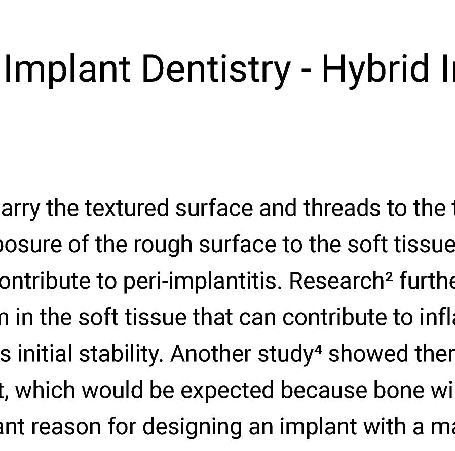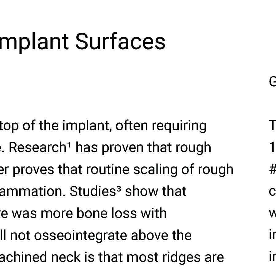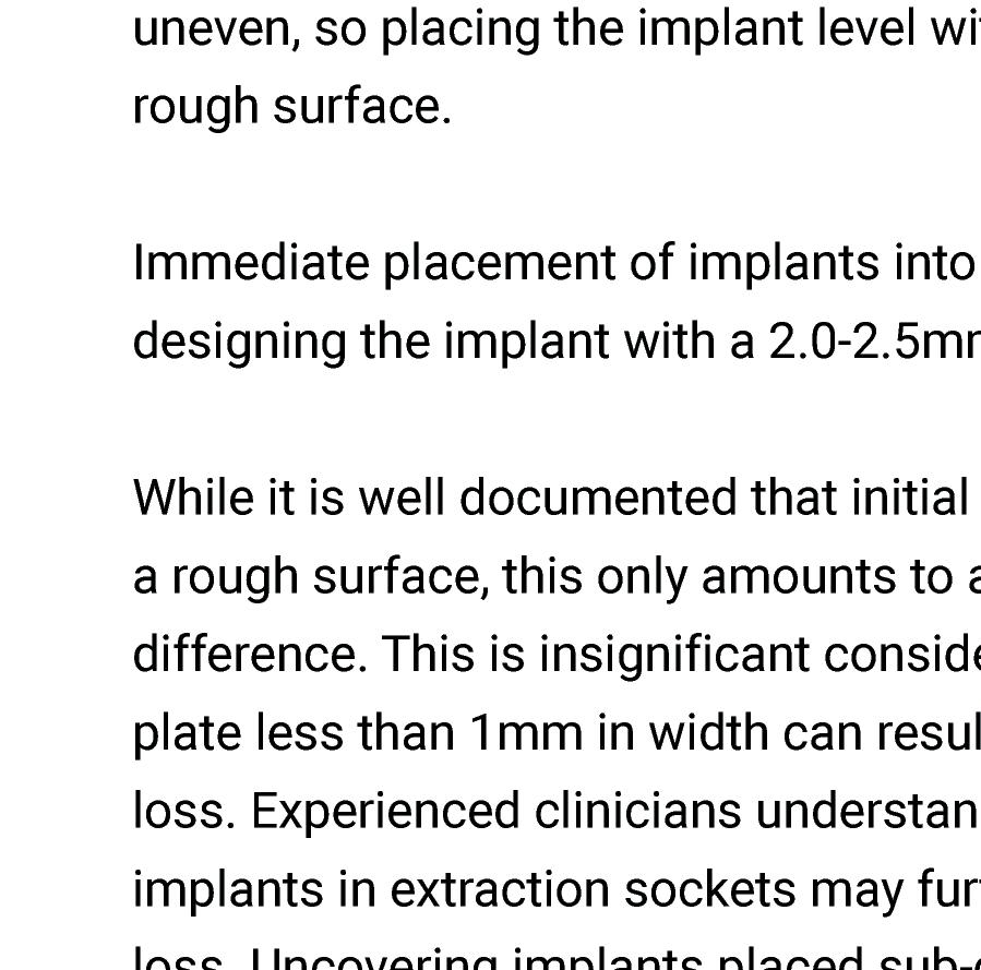 1mm added to the standard lengths provides vertical flexibility for placement in uneven ridges and extraction sockets