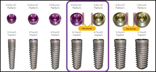 FACT: The Implant system includes a 3.0mmD and 3.4mmD platform options. The 4.7mmD implant if offered with both platform options creating a compromised emergence profile for the 4.7mmD, 5.2mmD and 5.7mmD implants with the 3.4mmD platform.