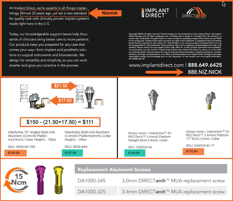 Fact: Implant Direct, under Niznick’s management (2004-2013) created the value segment in the implant industry with fair pricing and All-in-1 implant packaging that simplified ordering and inventory control.