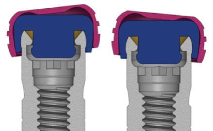 2. With GEN5™, the abutment engages the implant’s conical connection for stability whereas the junction between the On1TM abutment and the top of the On1TM Healing Collar is a butt joint connection.