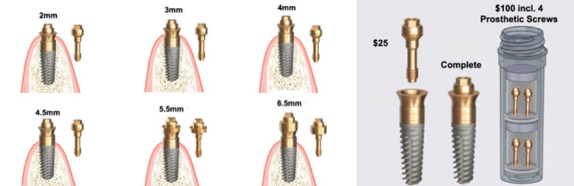 GEN5+™ WITH ITS 3 PROSTHETIC SCREWS INCLUDES 6 HEIGHT OPTIONS: 2MM, 3MM, 4MM, 4.5MM, 5.5MM & 6MM