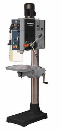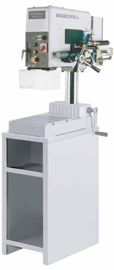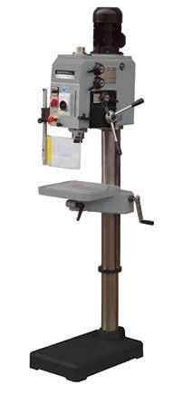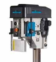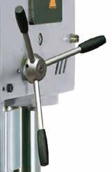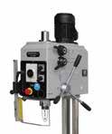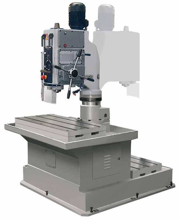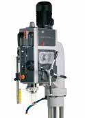 - Low voltage electric equipment - Security microswitch on cover - Electronic inverter with digital rpm counter - Emergency STOP push button - Spindle reversing switch - Electric equipment integrated on machine’s head - Safety drill guard with microswitch - Table with “T” slots