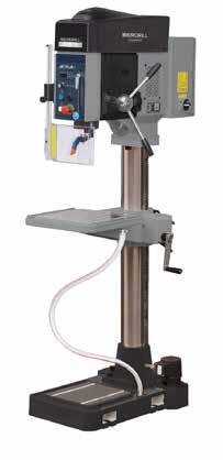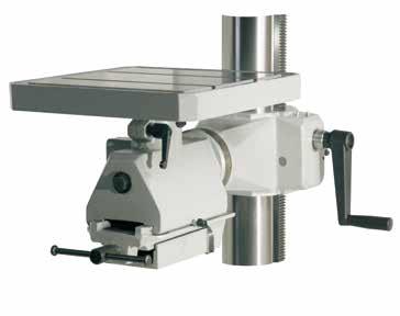 Machined base with coolant tank Automatic feed reversing system for tapping Rotating and tilting table