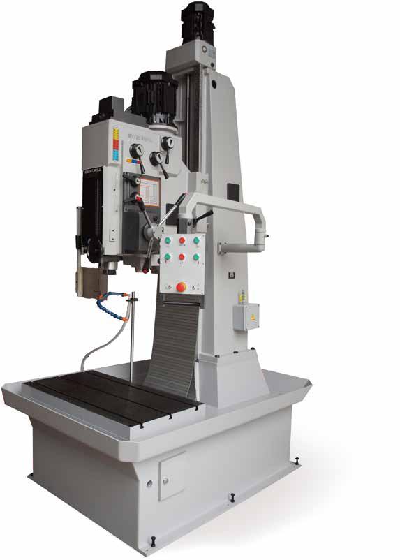 - Depth scale and adjustable depth stop - Automatic tool ejector - Low voltage electric equipment - Emergency STOP push button - Spindle reversing switch - Electric equipment integrated on machine’s head - Safety drill guard with microswitch - Table with “T” slots - Thermomagnetic switch - “CE” mark