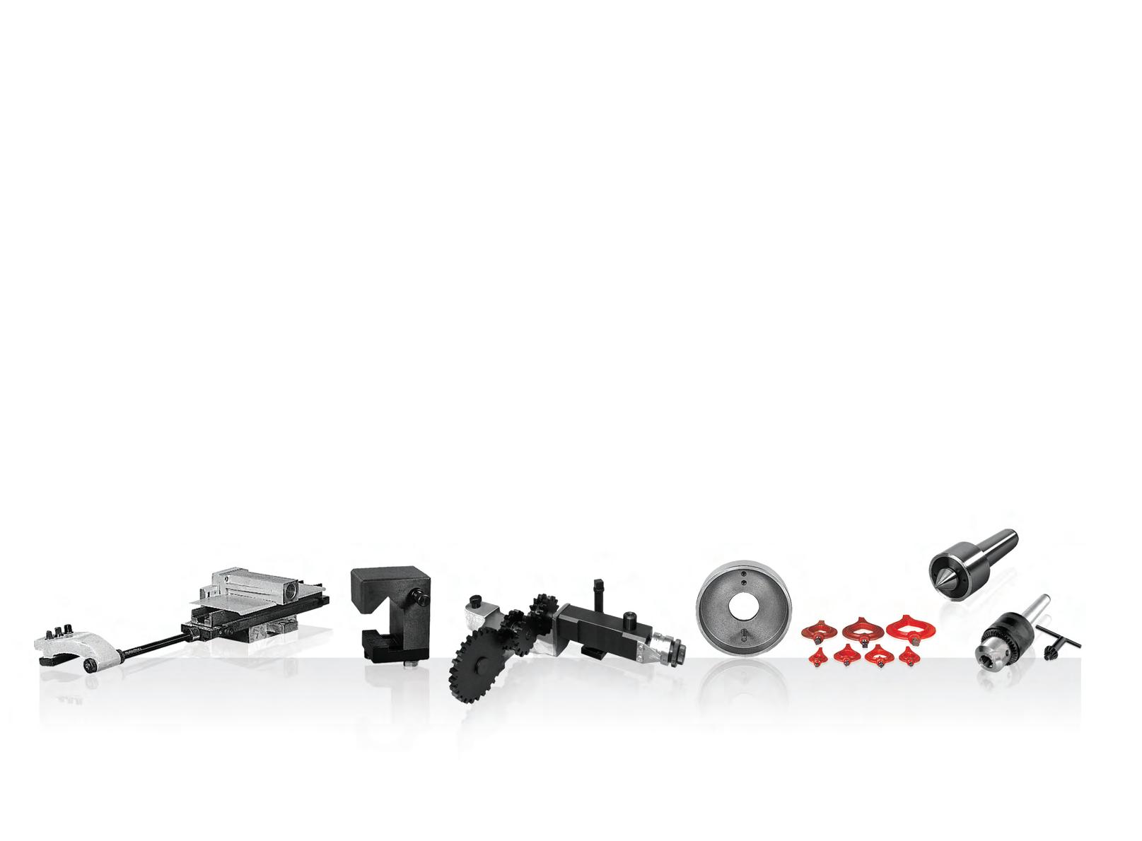 56 1 2 3 4 5 6 LATHE MACHINE OPTIONAL ACCESSORIES OPTIONAL ACCESSORY 3-JAW SELFCENTERING CHUCK INDEPENDENT 4-JAW CHUCK FACE PLATE FOLLOWER REST STEADY REST, SMALL SIZE STEADY REST, BIG SIZE TAPER TURNING ATTACHM. ONE-POSITION LONG. STOP THREAD DIAL DRIVE PLATE FOR SPINDLE NOSE DIN 55027 SET OF LATHE DOGS LIVE CENTER DRILL CHUCK WITH ARBOR