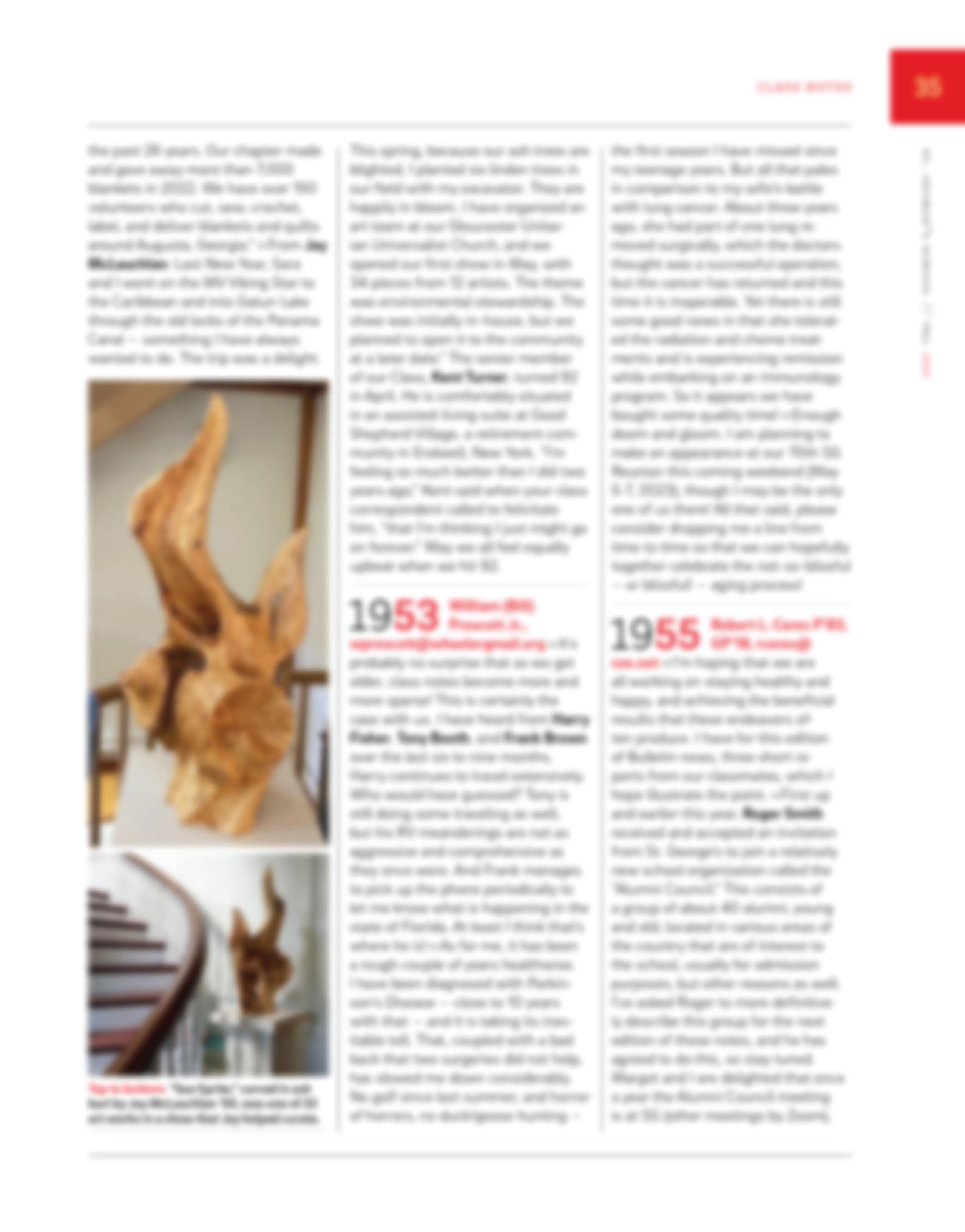 The CLASS NOTES section has been removed from this digital copy of the Bulletin to respect our alums’ privacy.