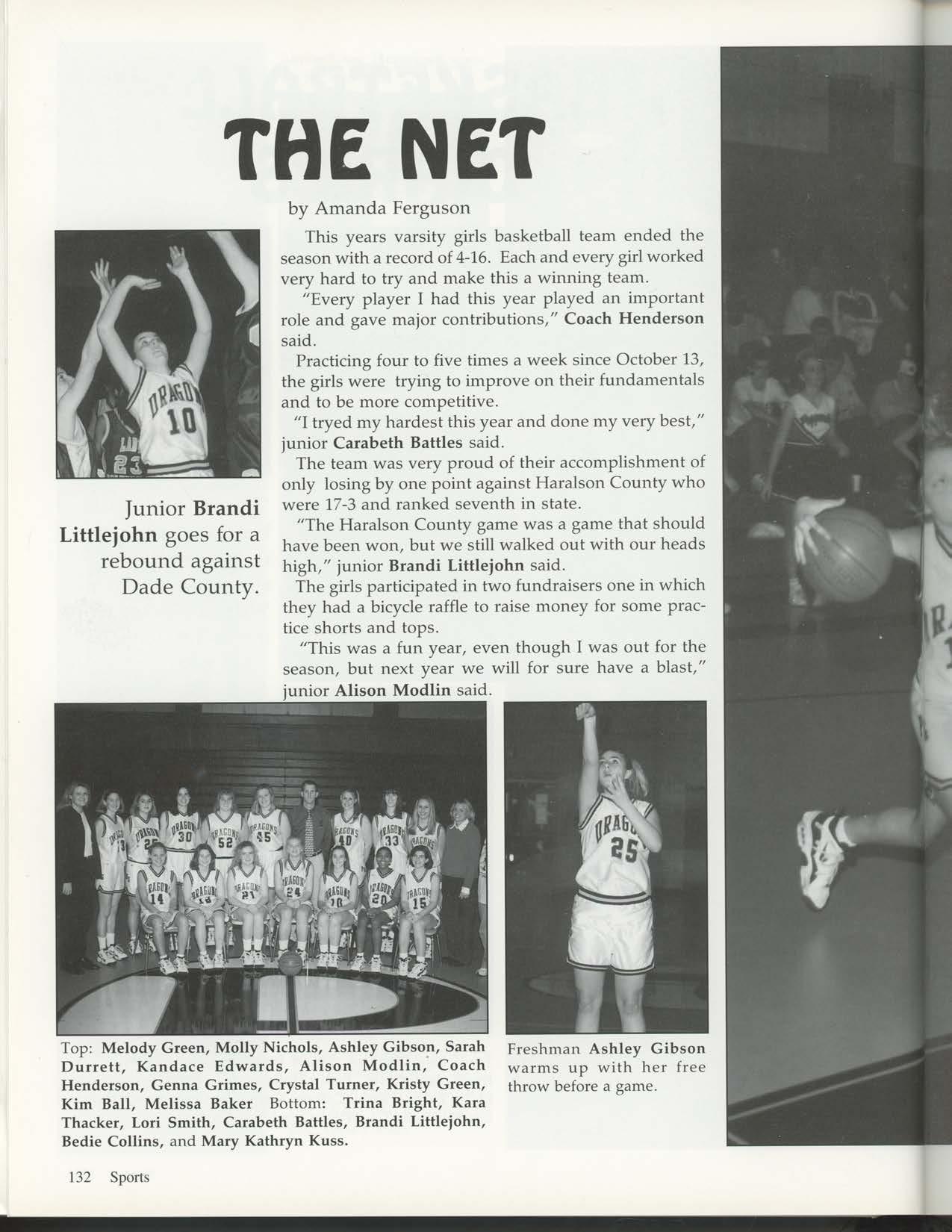 Varsity Team Top: Brandi Littlejohn, Erin Crawford, Kandace Edwards, Kristy Green, Elizabeth Kizziah, Meredith Casey, Coach Letfwich Bottom: Heather Hill, Candace Millican, Addie Tucker, Carabeth Battles, LaSaunda Forrister, and Melissa Johnson.