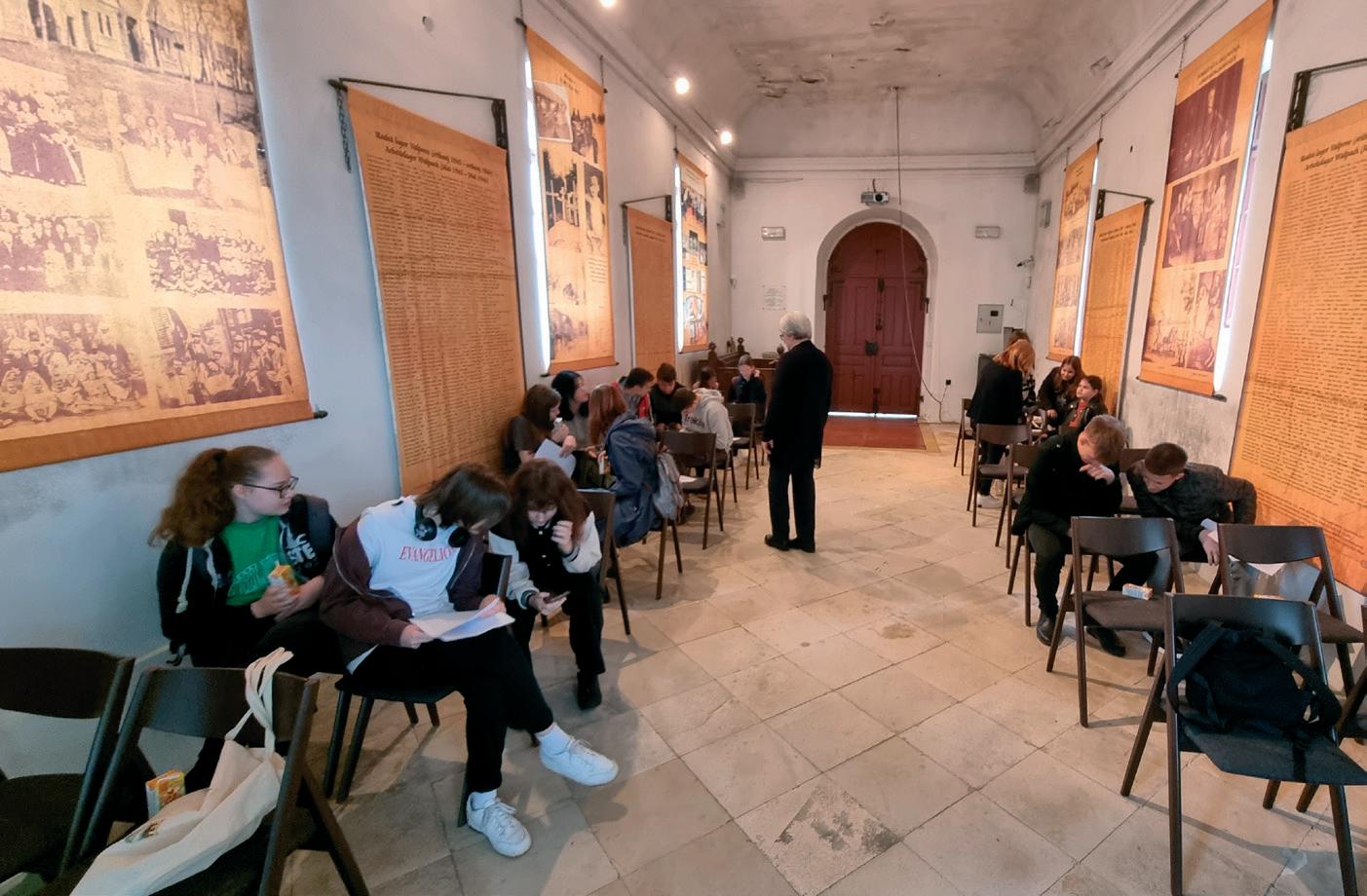 Durch Eröffnung der Ausstellung am 8. Mai 2023 in den Räumlichkeiten der Stadt- und Universitätsbibliothek in Osijek ermutigten wir auch unsere junge Mitbürger, diese zu besichtigen. Mit großer Freude veranstalteten wir die Fachleitung mit Besichtigung der Ausstellung für zwei Klassen aus dem III. Gymnasium und eine Klasse der Grundschule “August Šenoa”. Die Schüler zeigten großes Interesse für die Geschichte der deutschen Minderheit in Osijek, aber auch in ganz Europa.