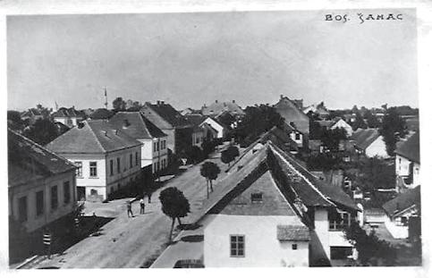 Bosanski Šamac 1930. godine. U prvom planu-desno dom Schlafhäuser. (zbirka autora).