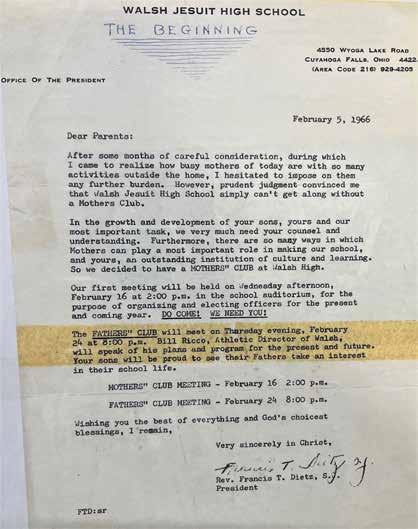 Anyone engaged with Walsh Jesuit knows how involved and important the Mothers’ Club is to our community. MC is consistently on campus making the lives of our staff and students better, making monthly faculty lunches, supplying snacks and treats for students during exams, charitable and wellness events, attaining necessary items for the school, fundraising, and so much more. How did a club so vital to the success of WJ and our students come to fruition? It all began with a letter from then Walsh Jesuit President Rev. Francis Dietz, S.J. followed by the first-ever Mothers’ Club meeting on February 16, 1966.