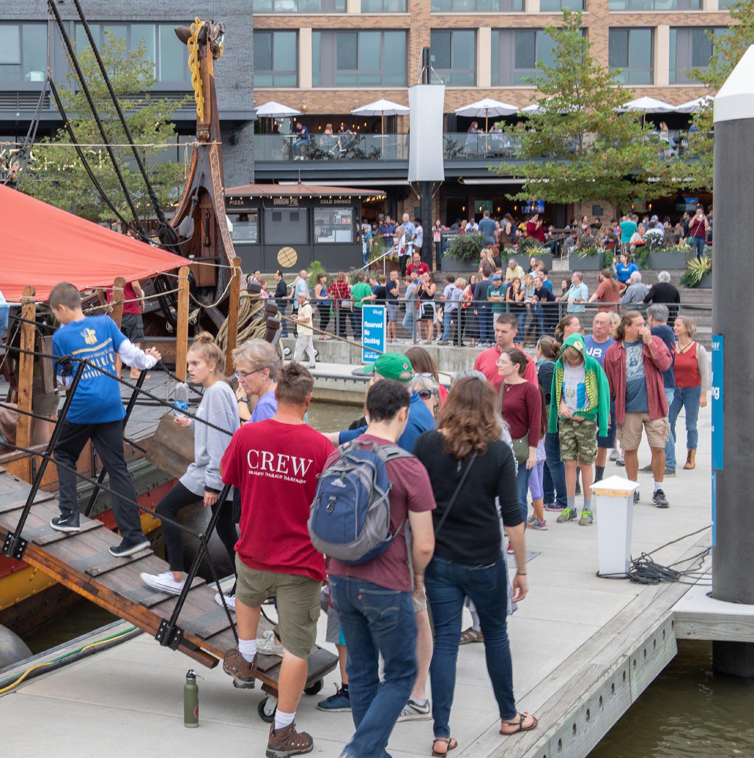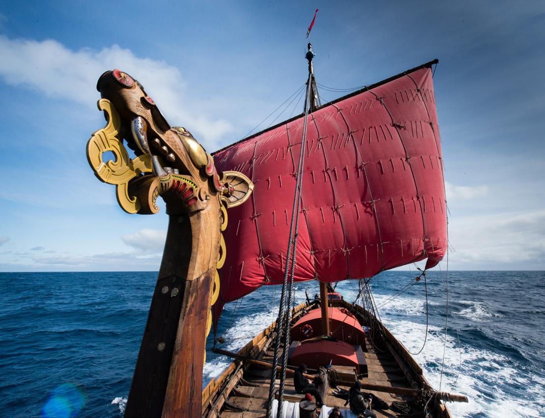 We ofer guests the opportunity to not only marvel at this stunning Viking ship – but also to interact with the crew while they share their personal experiences of the thrill, fear and exhilaration felt from having relived one of the world’s most mythological sea voyages – the frst transatlantic crossing and the Viking discovery of the New World, more than a thousand years ago.