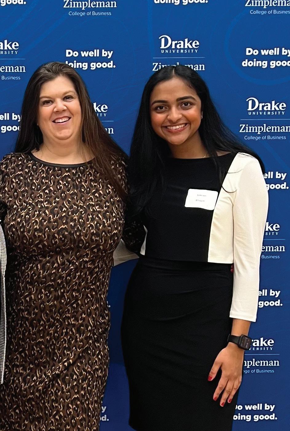 When deciding which school to attend, Brady knew she wanted a smaller program for the oneon-one connection that is not always possible at larger universities. Not only this, but her career aspirations to become an actuary required the ability to network with professionals and intern with di erent companies. Drake University’s prime location in the insurance capital of the U.S. meant that local employers actively sought Zimpleman students for internships.