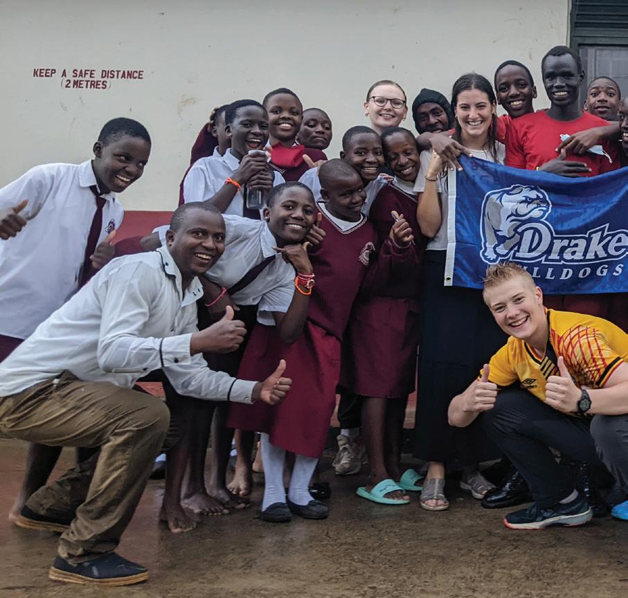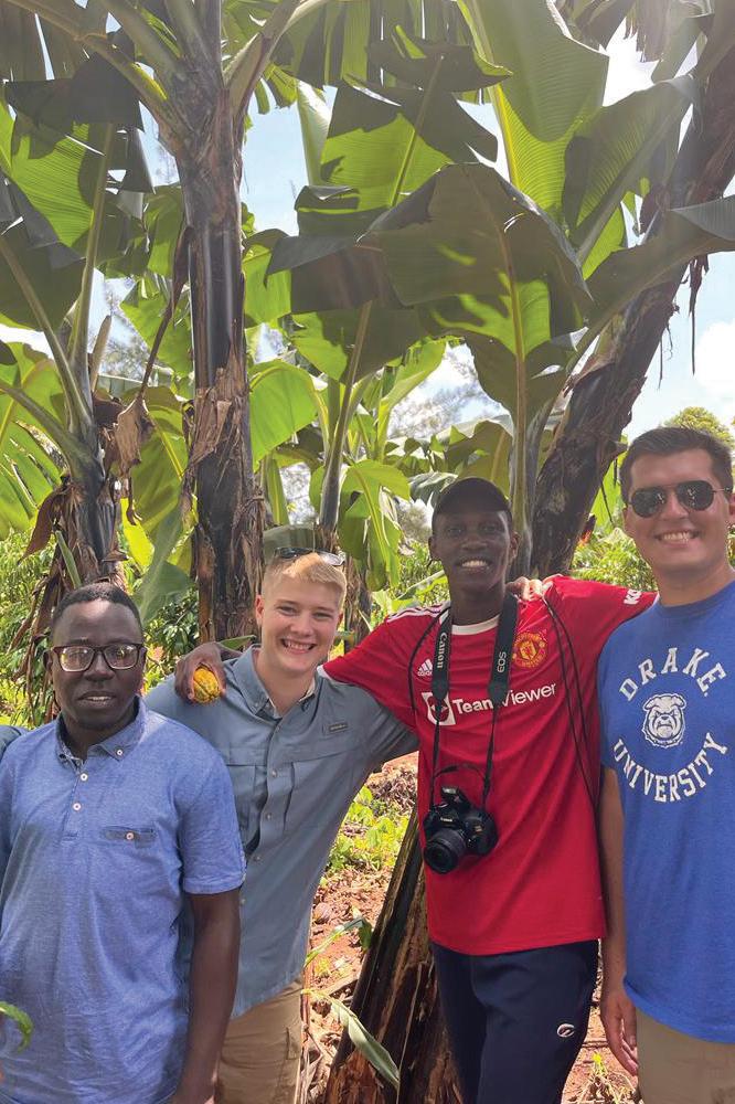 As part of his adventure, Hill has embraced Zimpleman’s promise to help students become global and multicultural citizens. Following his freshman year, he participated in one of Drake’s over 300 study abroad programs, traveling to Uganda alongside eight other Bulldogs to learn about economic development in developing countries.