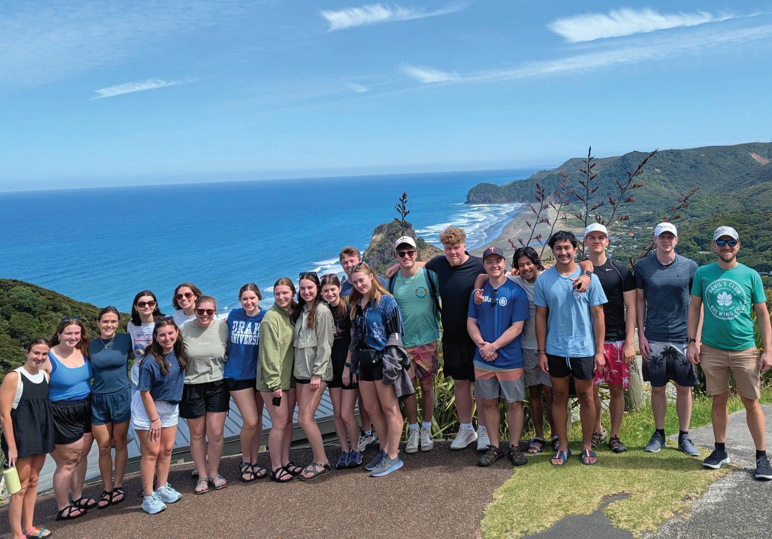 This past January, a group of Zimpleman students participated in an action-packed two and a half-week study abroad experience in New Zealand. Under the guidance of professors Amy Vaughan and Brian Vander Naald, 20 students had the opportunity to explore the cultural impact of a group of New Zealand's indigenous people—the Maori—and gained an understanding of factors effecting the country’s coastal region and animal species. The group also spent dedicated time examining New Zealand’s burgeoning tourism and adventure sport industries.