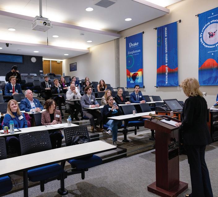 Held on Drake University’s campus, the one-day event brought together more than 110 participants, including influential thought leaders and members of the business community, to showcase how business can be a force for good. The summit was a collaborative e ort, with support from Drake’s O ce of Community Engaged Learning, the Kelley Center for Insurance Innovation, and the Pappajohn Center for Entrepreneurship Outreach.