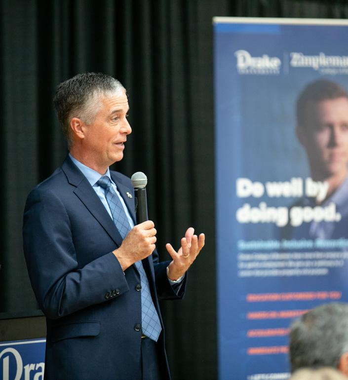 Dittmann has maintained strong ties to Drake University, drawing inspiration from the energy and vision of current students and faculty, as well as the Zimpleman College of Business’ ethos of doing well by doing good.