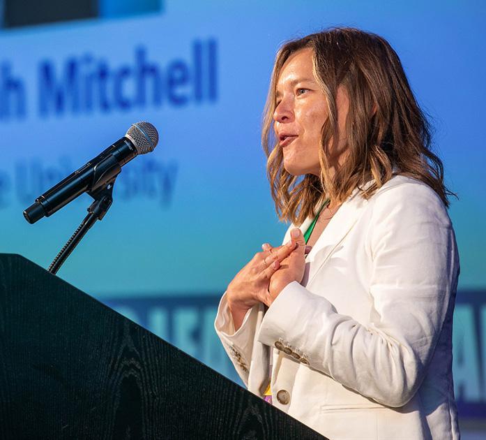 students. “I absolutely love our students and appreciate the opportunity to help nurture their curiosity,” she emphasized. Most recently, she co-authored The New Workplace: Employee Alignment in RemoteFirst, Office-Forward, and Hybrid Work Organizations, with Alanah Mitchell, dean of the Zimpleman College of Business, designed to help organizations navigate ongoing changes in work environments. “It’s inspiring to know that through my research, I can offer guidance to organizations still figuring out how to reinvent their workplaces,” she said.