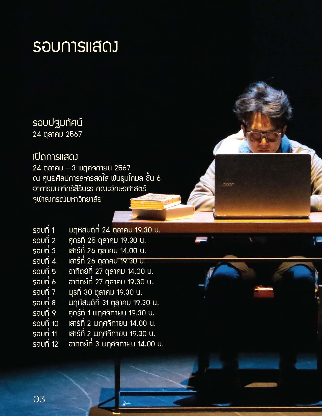 เปิดจองบัตรวันนี้   ทาง Ticketmelon.com  บัตรราคา 800 บาท  นักเรียน นิสิต นักศึกษา 400 บาท (ละครเหมาะกับผู้มีอายุ 12 ปี ขึ้นไป) วันธรรมดา  รอบการแสดงเวลา 19.30 น. / วันเสาร์-อาทิตย์  รอบการแสดงเวลา 14.00 น. และ 19.30 น. / วันอาทิตย์ที่  3 พ.ย. จัดแสดงเพียงรอบเดียว เวลา 14.00 น.