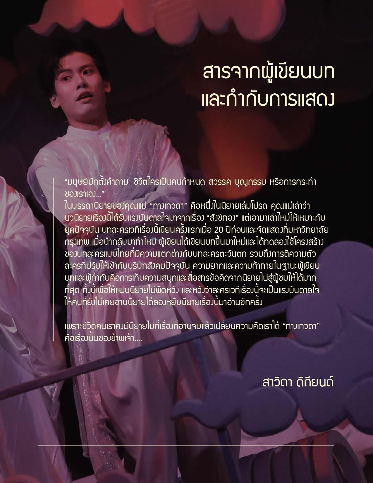 ละครเวที “ทางเทวดา” จัดแสดงทั้งหมด 12 รอบ ตั้งแต่วันที่  24 ต.ค. - 3 พ.ย. 2567  (ยกเว้นการแสดง 28-29 ต.ค.) ณ ศูนย์ศิลปการละคร สดใส พันธุมโกมล ชั้น 6 อาคารมหาจักรีสิรินธร คณะอักษรศาสตร์ จุฬาลงกรณ์มหาวิทยาลัย