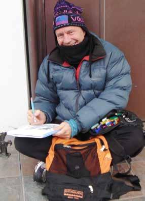 USk Taranaki sketchers have tried sketching on ladders, bike sketching, binocular sketching and even traffic island sketching – with ribald comments from passing motorists. A Melbourne sketcher encouraged me to