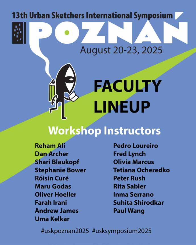 Welcome to another packed issue full of news from USk and around the world . We’re farewelling our dynamic Past President Genine, and welcoming Ronaldo Kurita as the new President, who will be ably assisted by Mike Daikubara. You can get the latest on the Poznan Symposium, and read about two exciting USk initiatives to get invoved in: the inaugural USk International Census, and our second International Urban Sketchers Week .