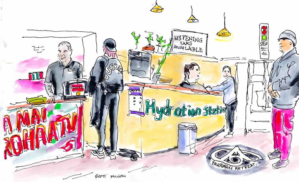 SCOTT WILSON USES SKETCHING TO APPRECIATE HIS SURROUNDINGS, AND HE’S GONE BEHIND THE SCENES IN DOZENS OF LOCAL TARANAKI CAFÉS AND BUSINESSES, THANKS TO HIS AMBITIOUS SELF-GENERATED PROJECT.