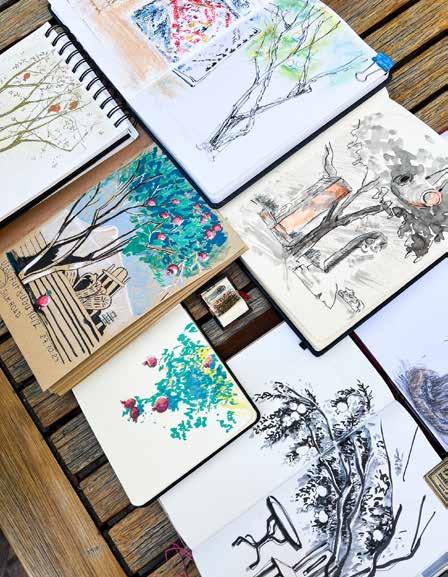 over 100 cafés in New Plymouth. And Natasha Marits steps us through how to combine collage with urban sketching.