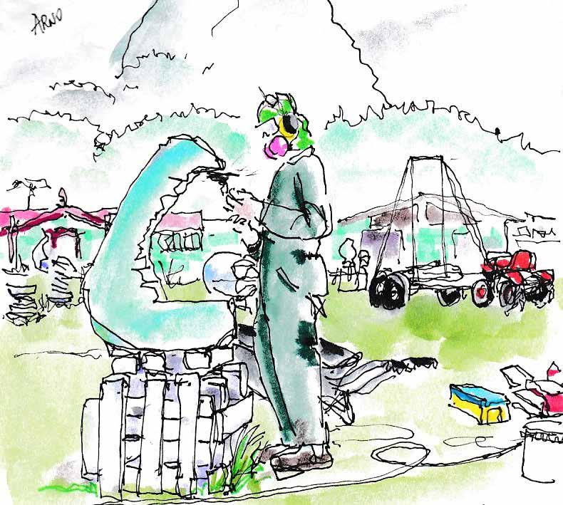Igrew up in a small rural village at the bottom of New Zealand, my mum an artist and my dad an engineer. My home was full of large oil paintings, screen printing drying on the fence, dyed wool being stomped on in the shower and stainless steel sculpture prototypes hanging from the eaves. Always a project going on. I became a chemical engineer to pay the bills and used my art for the fun. As a boy I became a wood carver, later a carver of stone and bone. It was only after I’d left home I got into sketching. I said to mum: “I have a day to spare, can you teach me to draw”. Much eye rolling.