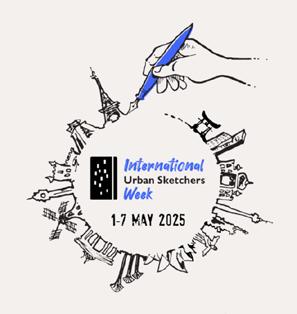posters, badges, or even a custom stamp for your drawings. Throughout the week, share your sketches, experiences, and local sketching stories using #USkWeek2025. Let’s show the world what urban sketching means to us! Visit the Urban Sketchers website for all the details and resources.