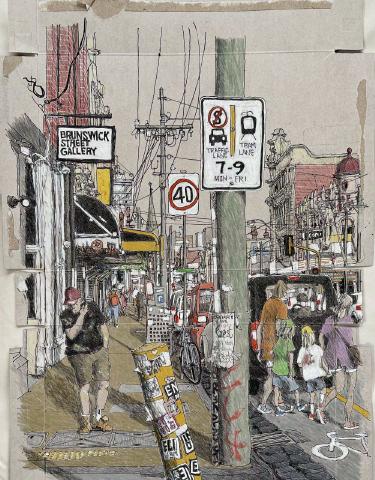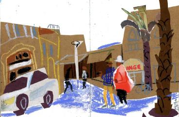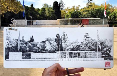 An experimental approach to collaborative urban sketching using recycled wallpaper rolls. Three artists with different styles work together in the streets, using urban furniture, transforming limitations into creative opportunities while promoting an eco-friendly sketching practice.