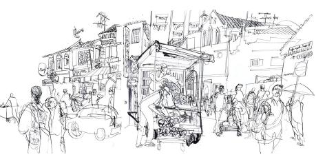 2. Build relationships. Sketching takes time and it’s also perceived as a much less intrusive approach than photography. For all these reasons, people often come up to us when we are drawing and we can start a talk.