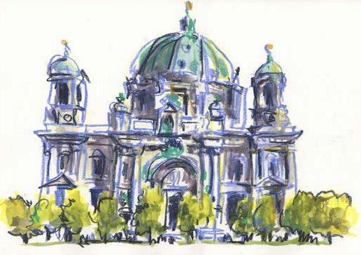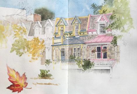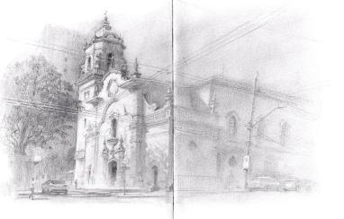 In this demo, we’ll explore how to create a lively sketch of a complex building using mixed media. We’ll discover how to sketch it in a fun and loose way while still preserving a degree of accuracy. We’ll create a richer story about the building as we interpret the important parts of its design, and as we experiment with colour and texture. In recent years, I’ve been doing a lot of experimentation with mixed media, exploring ways of combining watercolour with ink, pencils, crayons, tempera sticks and markers. This has not only made urban sketching more fun, but it has increased my options for storytelling and personal interpretation. I love making decisions about colour and texture while sketching - and this is particularly the case when capturing a complex building.