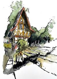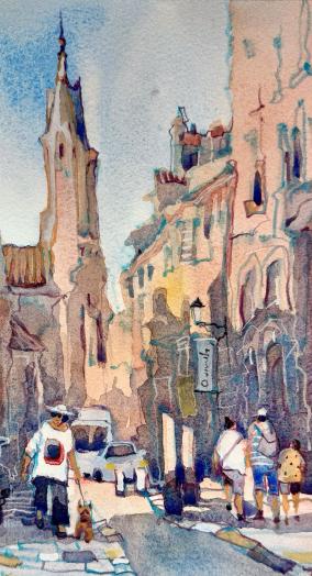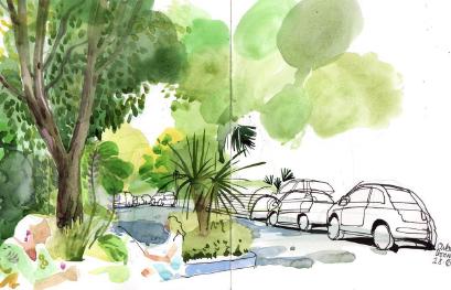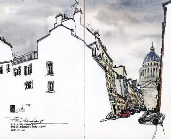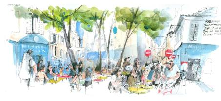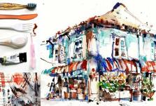 Liz Steel worked for 18 years an architect in Sydney and is now a full-time artist, teacher and blogger focusing on quick sketching with ink, watercolor and mixed media. She captures moments from her daily life and traveling adventures in her sketchbooks and publishes regular updates at lizsteel.com.