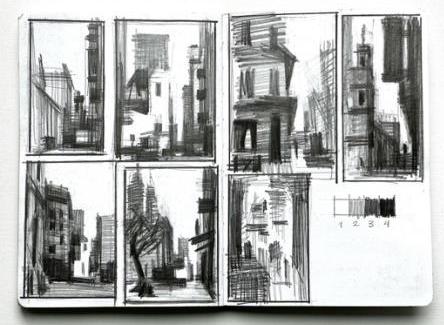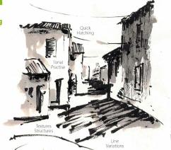 Largely based on the idea of a notan, but more catered to urban sketching, this delicate balance of solid shape and line will allow the sketcher to evaluate how the picture works and communicates at every step.