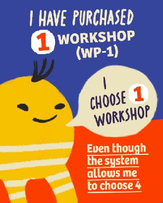 WARNING: Make sure that you pick ONLY the number of workshop/s that is/are included in your Workshop Pass. Eventbrite ticketing system will allow you to pick 4. Workshops beyond your ticket entitlement will be deleted.