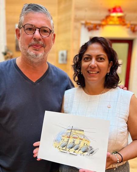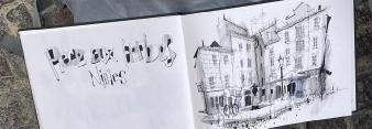 Three sketching friends based in Orléans, who have been drawing together since 2020 after meeting through their local chapter. They come from different cities, countries, and professions (from jurist to art teacher, architect to photographer, teacher to physiotherapist), yet they all arrive at the same color palette.