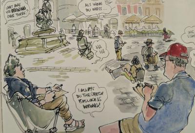Pre-registering for a Symposium pass is not essential to attend the USk Symposium. Sketchers from all over the world can still participate in the event and join both free sketchwalks and the evening Drink & Draw events.