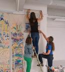 Three Hands: Collaborative Drawing on Giant Recycled Wallpaper Roll