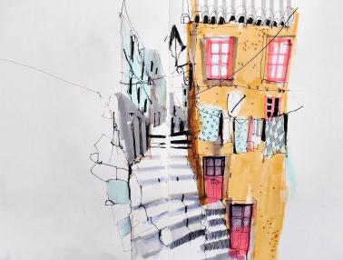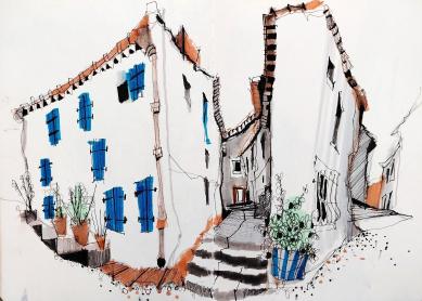 In this demo, we’ll explore ways of combining playful use of materials with a structured approach to sketching architecture. We will start by analysing the building in terms of volumes, major divisions, and details. We’ll then switch to testing our materials - exploring ways in which we can combine or layer different media - and then discuss if some media would work better for some aspects of the building. We’ll also experiment with colour and see if there are different colours that complement the actual hues of the building.