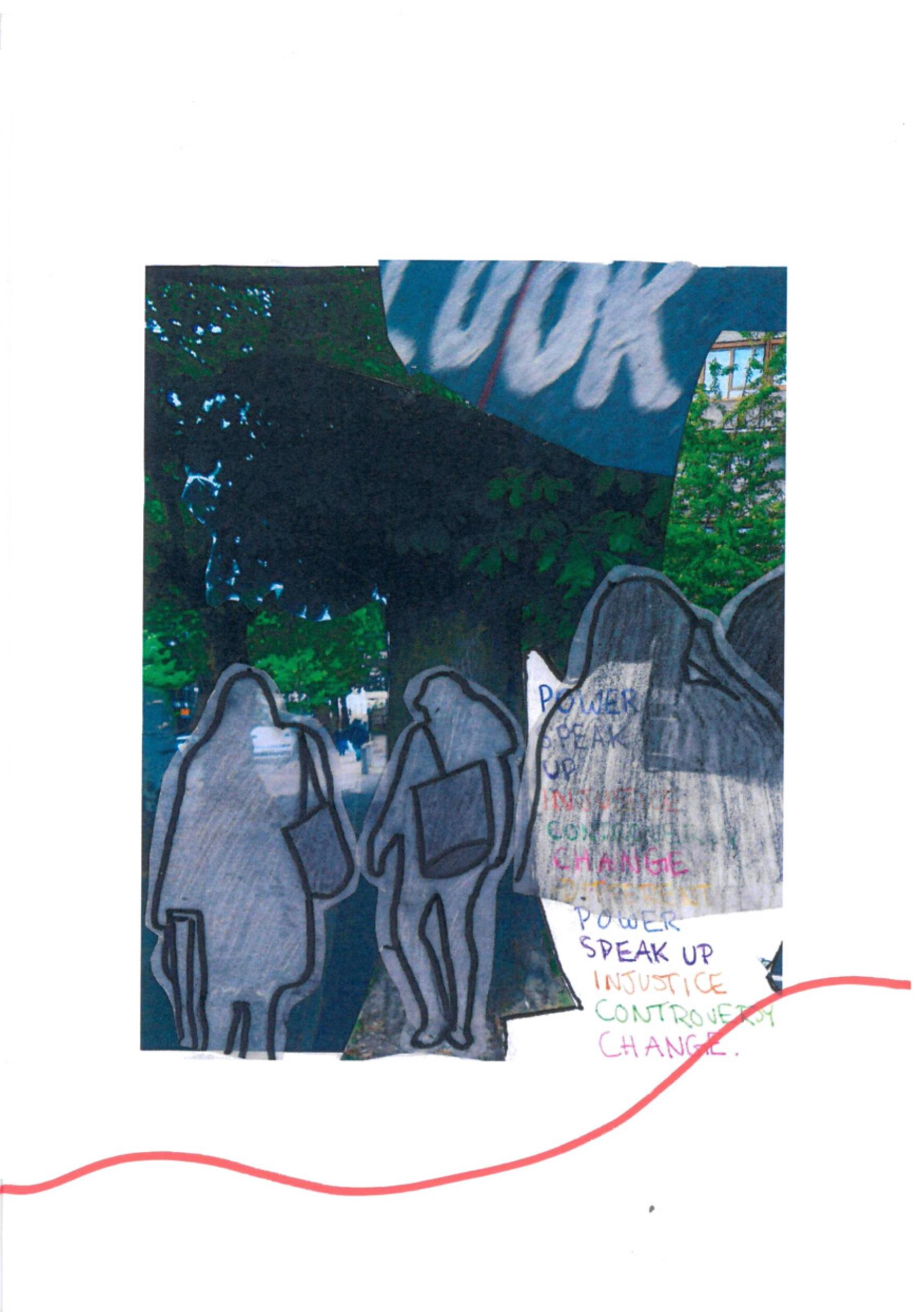 Drawing in Social Space: Project 1 connects Bolivian activist collective, Mujeres Creando, BA Fine Art students and Young Girlz Matter – a collective of 12–17 year old female students from Southbank University Academy. Over six weeks the groups spent time connecting and exploring what it means to be part of a collective, reflecting on the processes of Mujeres Creando through drawing activities, visits to the university, walks, games and sharing food, all situated in the context of South East London. A co-produced zine which documented the groups shared work and experiences was gifted to the girls at a celebration event and will be archived in the libraries of Camberwell College of Arts, Drawing Room, and Southbank Academy University.