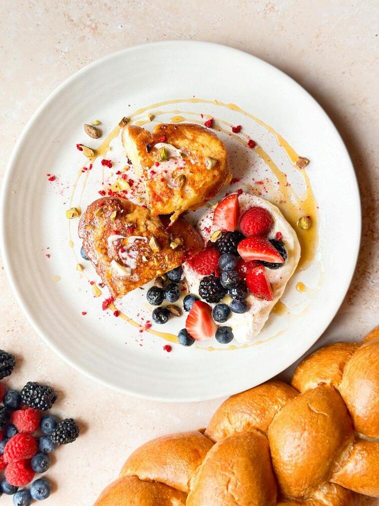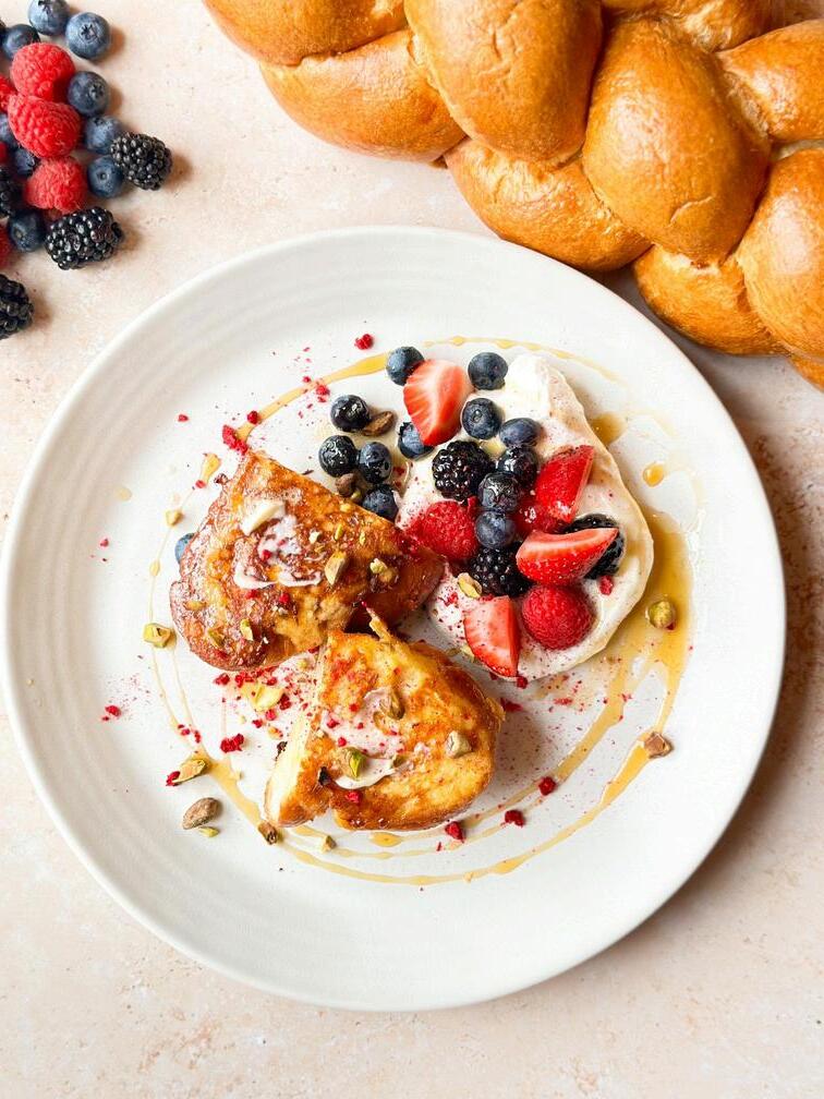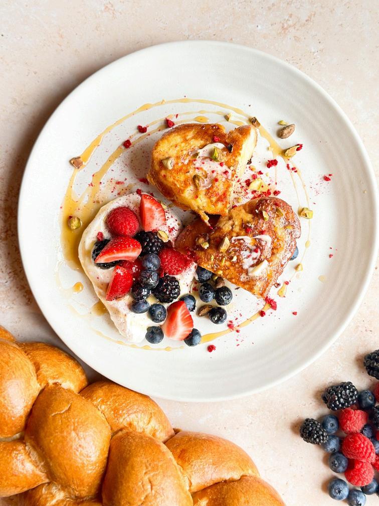 5 Serve with whipped cream, topped with fresh berries, chopped pistachios, and a generous drizzle of maple syrup