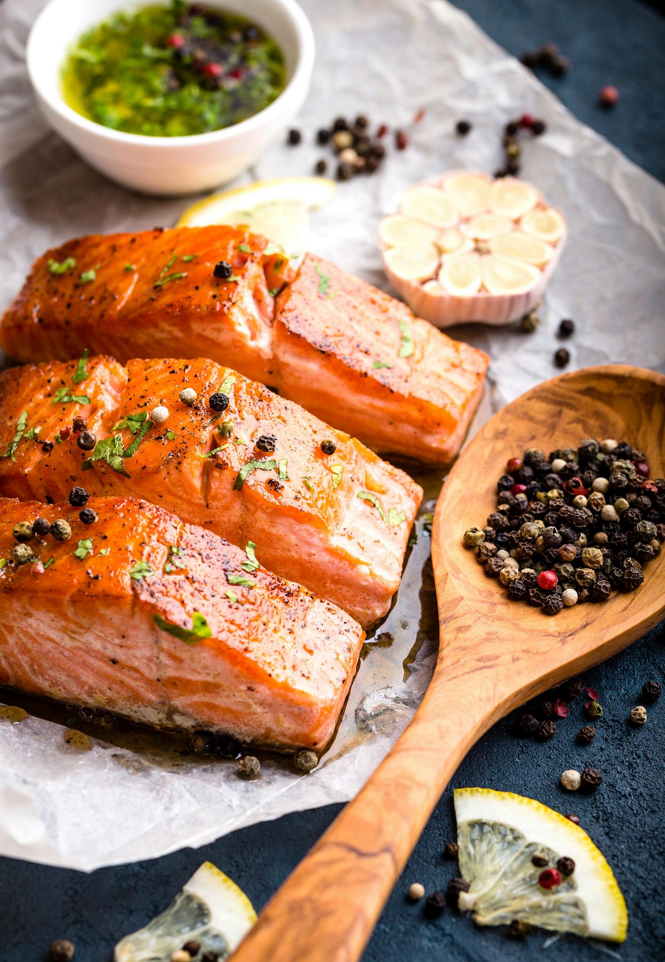 4 portions of salmon, skin on 1/3 cup apple cider vinegar